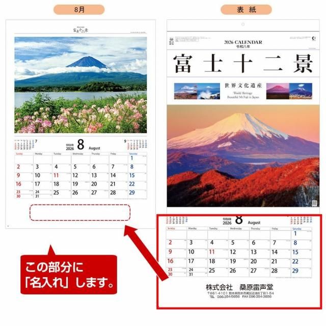 【NK-66】富士十二景 名入れカレンダー 2026年