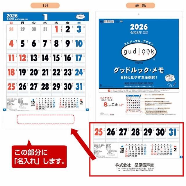 【TD-887】グッドルック・メモ 名入れカレンダー 2026年