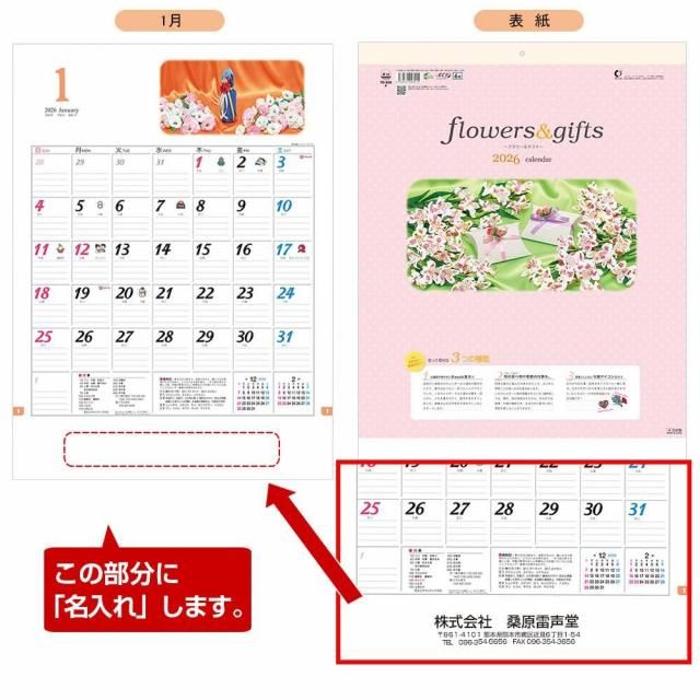 【TD-828】フラワー&ギフト 名入れカレンダー 2026年