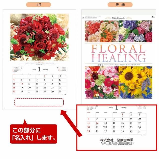 花によって癒やしを求める 「癒やし」効果絶大の、情報付カレンダーの登場!! フローラルヒーリング(花療法)名入れカレンダー 2026年版名入れカレンダー【NK-71】縦幅 535mm × 横幅 380mm