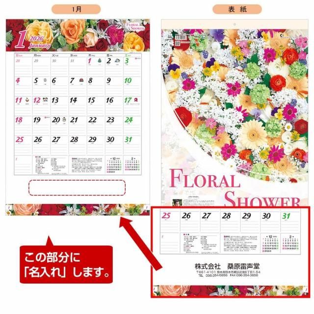きれいな花のベストセラー! 実用性がマッチした!お花のカレンダー フローラル・シャワー名入れカレンダー 2026年版名入れカレンダー【TD-827】縦幅 535mm × 横幅 380mm