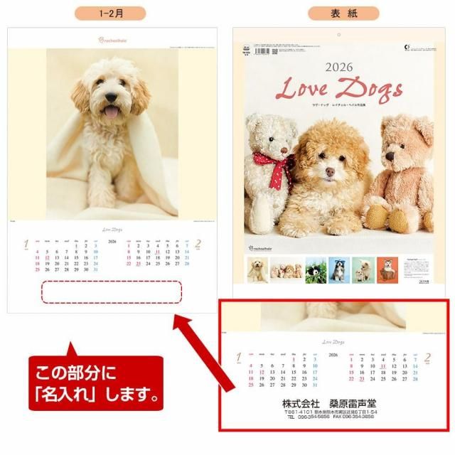 写真が最高! わんランク上の、犬のカレンダー ラヴ・ドッグ 〜レイチェル・ヘイル作品集〜名入れカレンダー 2026年版名入れカレンダー【TD-933】縦幅 535mm × 横幅 380mm