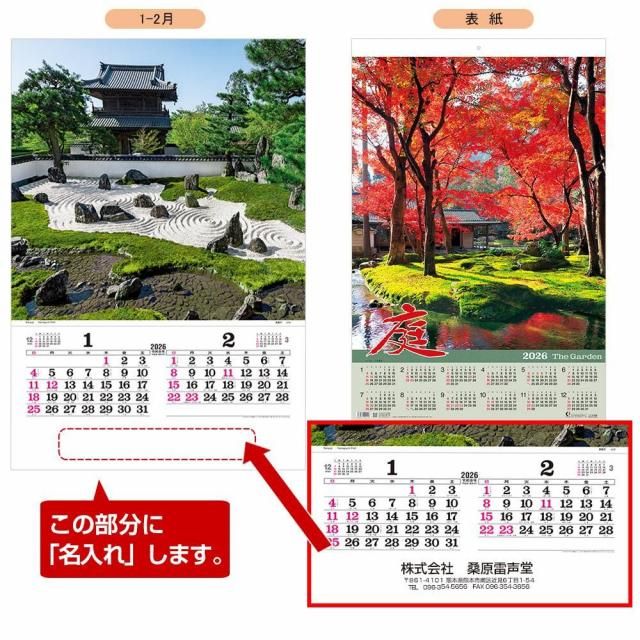 庭ファン必見 名庭がズラリ。四季おりおりのカレンダー トーハン・DX庭名入れカレンダー 2026年版名入れカレンダー【TD-510】縦幅 742mm × 横幅 504mm ![]() ![]() 「名入れ」できる項目は6項目となります。