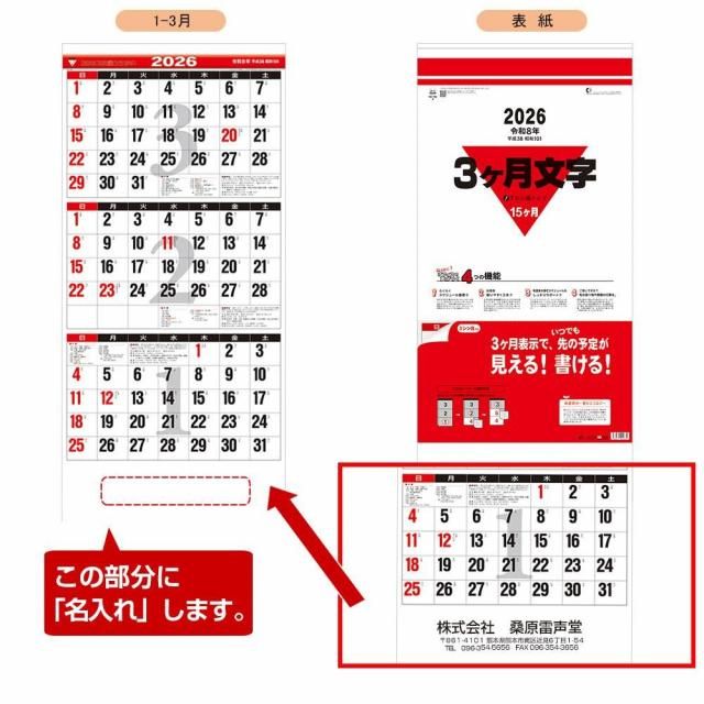 【TD-795】3ヶ月文字(15ヶ月) −下から順タイプ−名入れカレンダー 2026年