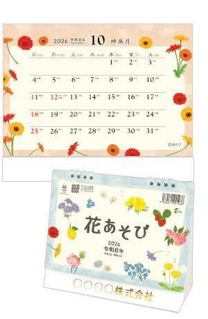 年表付きメモスケジュールも充実 四季の草花が、優しい気持ちを届けます。 卓上L・花あそび(木版画)カレンダー 2026年版名入れカレンダー【TD-267】縦幅 156mm × 横幅 180mm