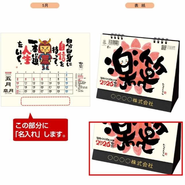 何事も笑顔が一番 笑顔だと一日が、楽しく過ごせるカレンダー 卓上L・楽笑〜笑顔になれる書画ごよみ〜カレンダー 2026年版名入れカレンダー【TD-268】縦幅 156mm × 横幅 180mm