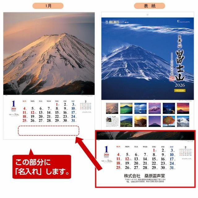 企業イメージは富士山級に上がるかも! 額に入れて飾れるほど写真がきれい、デスクにも花を添えましょう!!< A2日本の心・富士山〜大山行男作品集〜名入れカレンダー 2026年版名入れカレンダー【TD-634】縦幅 608mm × 横幅 425mm