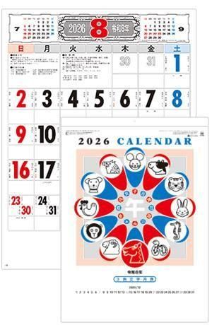 見やすい3色文字 充実した暦の情報、実用的なメモ欄付きカレンダー 3色文字月表(晴雨表入り・年間予定表付)名入れカレンダー 2026年版名入れカレンダー【SG-288】縦幅 538.5mm × 横幅 380mm