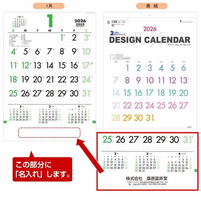 デザイン・カレンダーDX・メモ名入れカレンダー  (2026年版名入れカレンダー) 【TD-691】