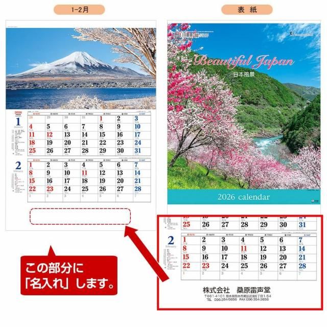 【TD-900】メモ付日本風景 名入れカレンダー 2026年