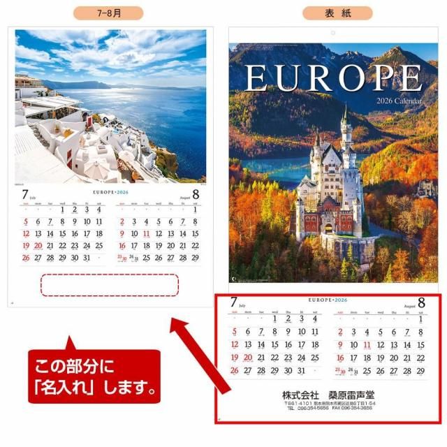 【NK-28】ヨーロッパ 名入れカレンダー 2026年