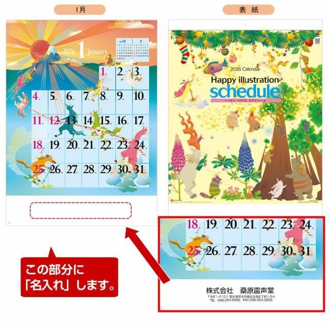 【SG-298】ハッピーイラストスケジュール 名入れカレンダー 2026年