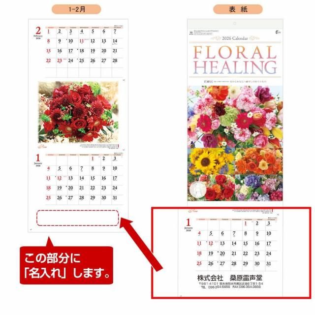 フローラルヒーリング(2か月文字) 名入れカレンダー 2026年版名入れカレンダー【NK-903】