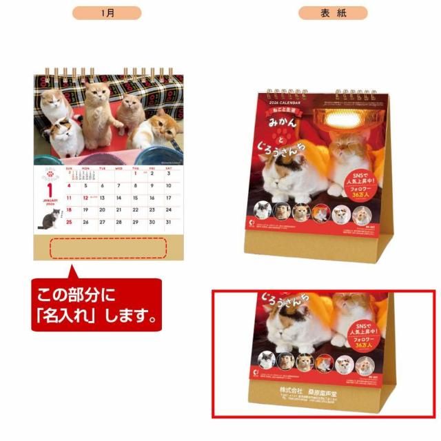 ねこと生活 みかんとじろうさんち卓上カレンダー (2026年版名入れカレンダー) 【NK-527】