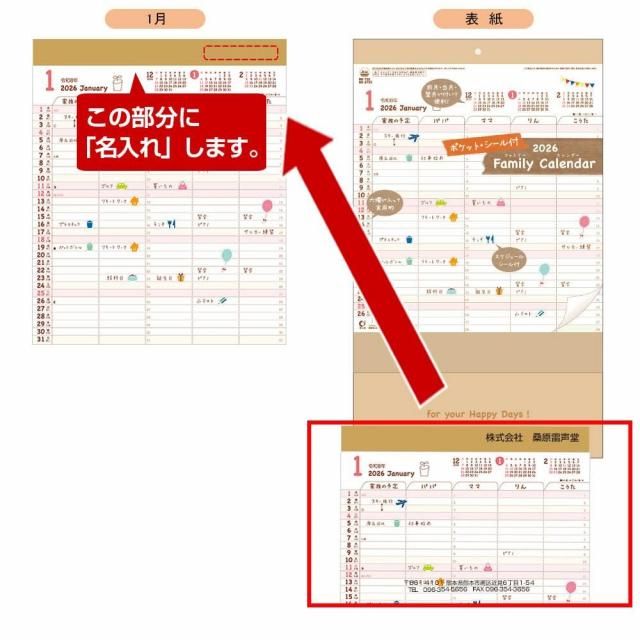 【NK-752】ファミリーカレンダー(ポケット・シール付)名入れカレンダー 2026年
